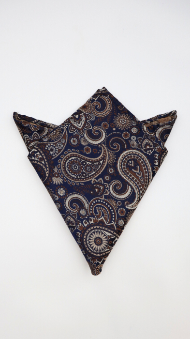 Batista ESCUDO din mătase naturală bleumarin cu paisley bej & maro - eleganță profundă cu accente clasice