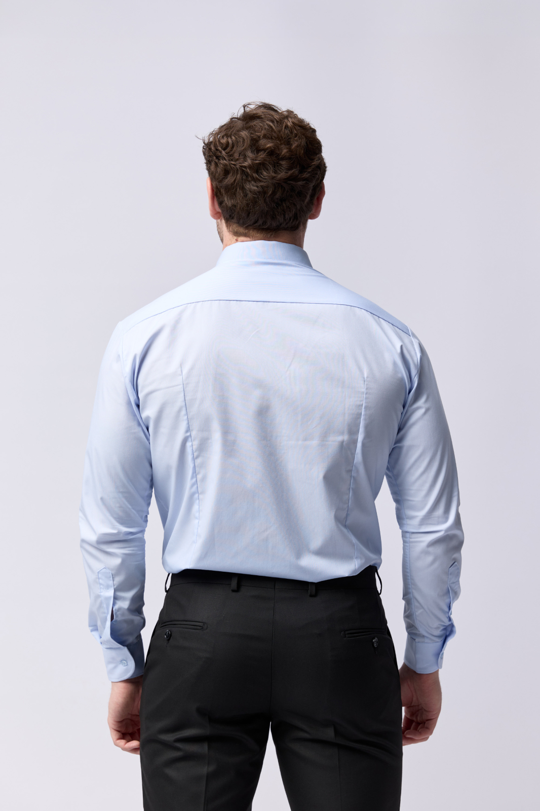 Camasa barbati, croita slim fit din tesatura de culoare bleu, cu compozitie de 55% bumbac 40% poliester si 5% lycra. Lycra ofera camasii extensibilitate, o face mai usor adaptabila corpului și mai plăcuta la atingere. Se poate folosi atat pentru o tinuta eleganta purtata in combinatie cu pantaloni de stofapantofi  si un sacou, cat si una casual - completand tinuta cu pantaloni chino, un sacou si pantofi din piele intoarsa .