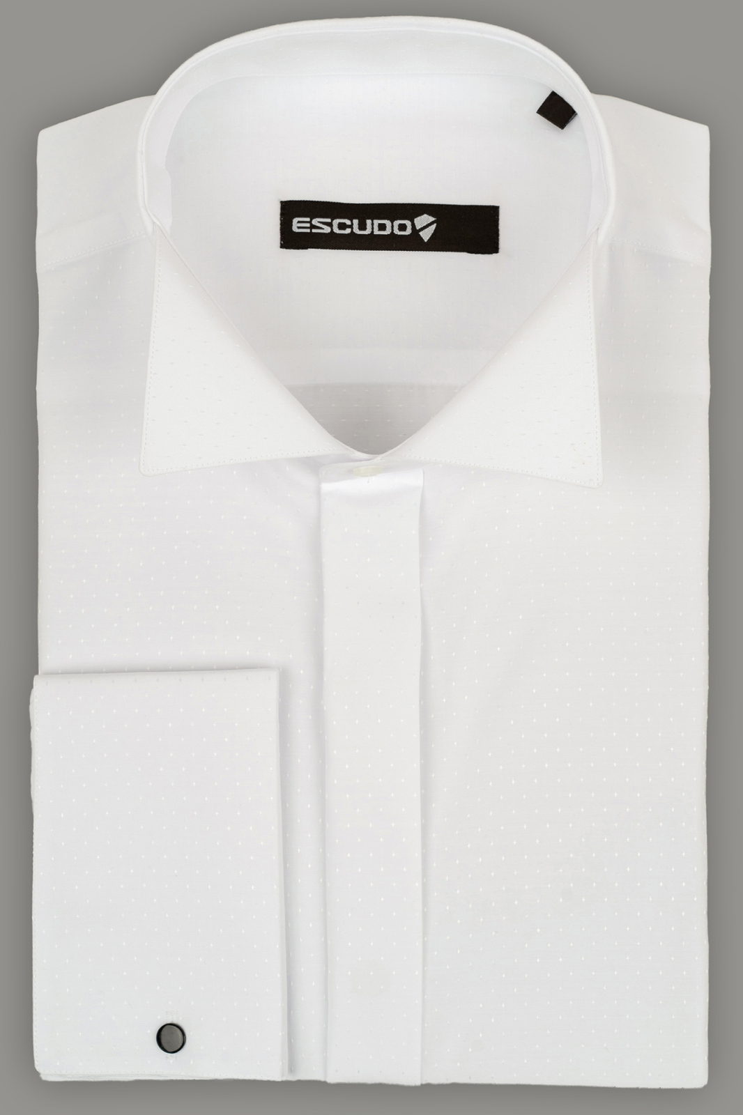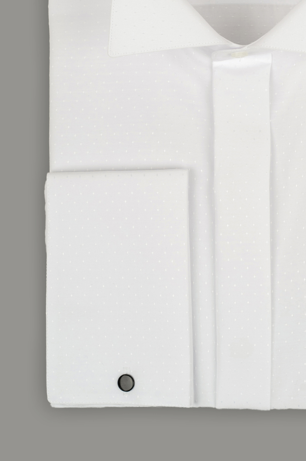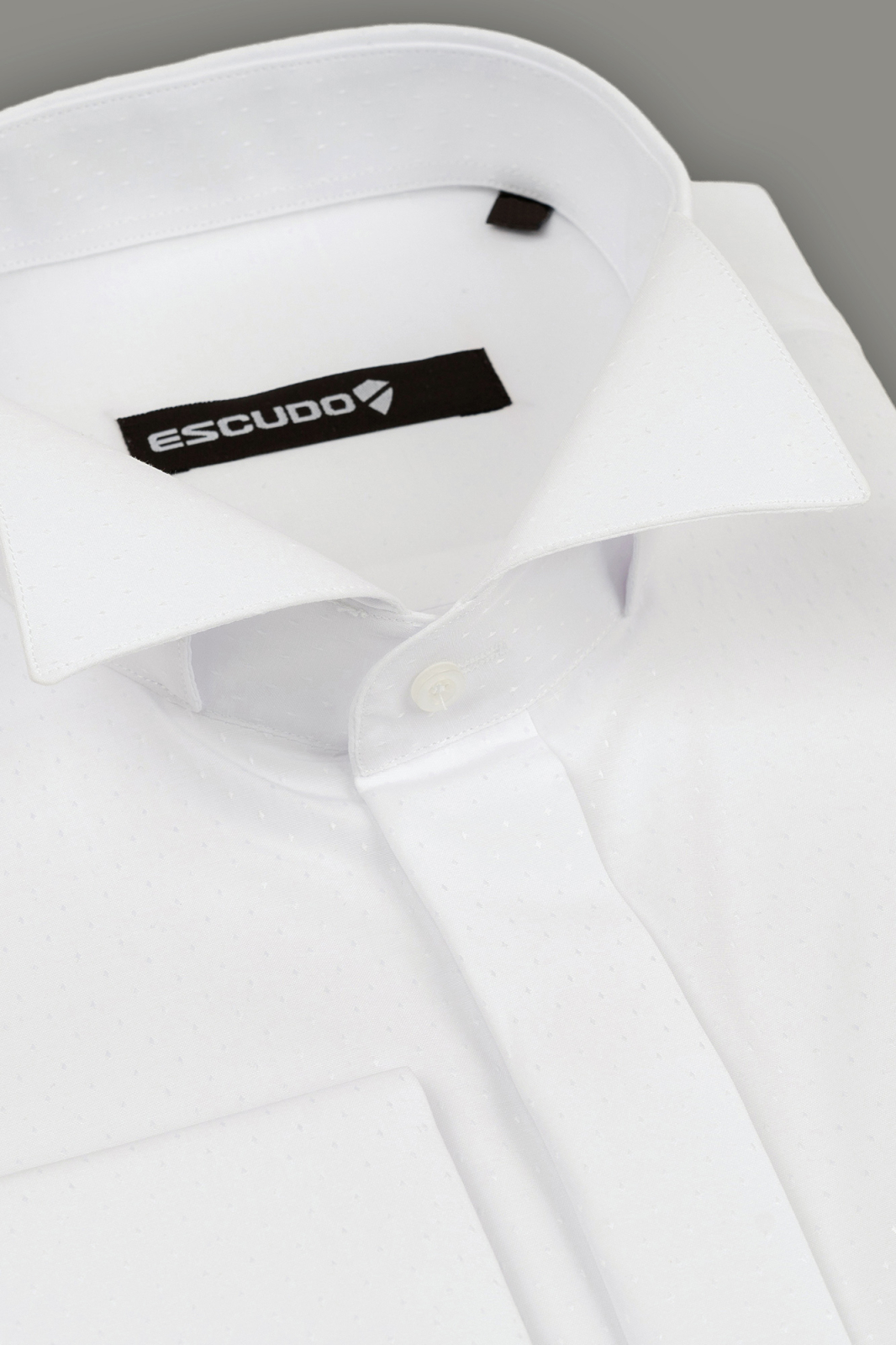 Camasa ocazie barbati slim fit alba cu model elegant in tesatura - guler pentru papion
