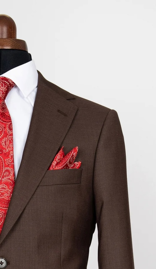 Costumul ESCUDO maro este format din doua piese: sacou si pantaloni. Croit slim fit dintr-o tesatura cu compozitie de poliester-viscoza-lycra combina avantajele fibrelor si ofera o senzatie matasoasa la atingere, respirabilitate si confort, este rezistent la sifonare, indoiri repetate, abraziune si uzura, dar este si usor de intretinut.