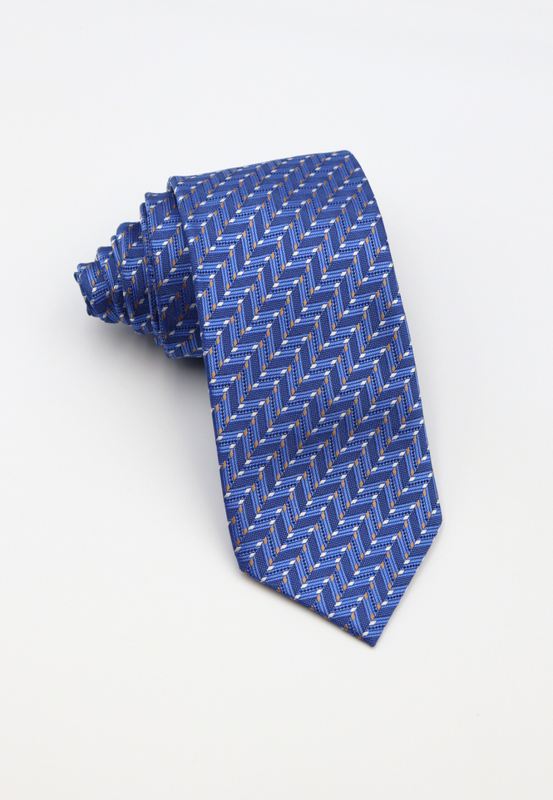 Albastrul este unul dintre cele mai versatile fonduri pentru o cravată: suficient de neutru pentru mediul corporate, suficient de prezent pentru a nu trece neobservat.