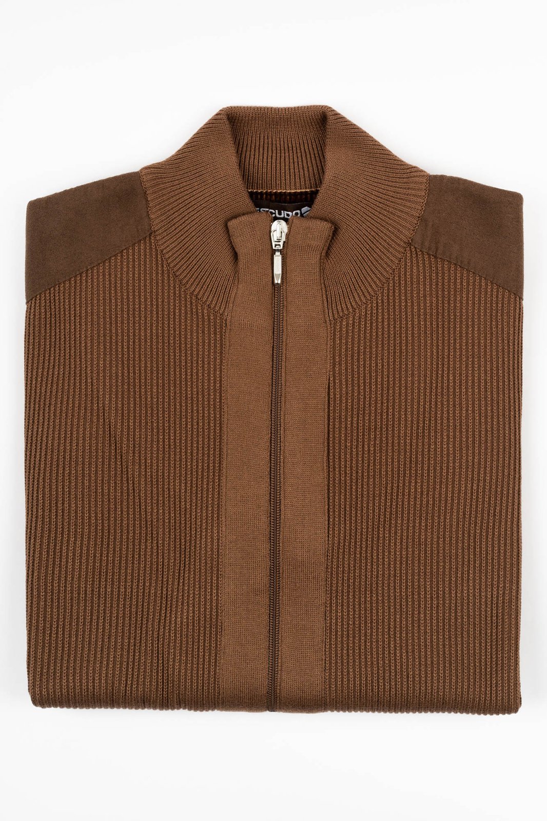 Această jachetă maro, realizată din tricot de calitate superioară, îmbină stilul clasic cu un design modern. Textura ribbed adaugă un plus de rafinament, iar umerii cu inserții din material fin oferă un detaliu sofisticat și rezistent în timp.