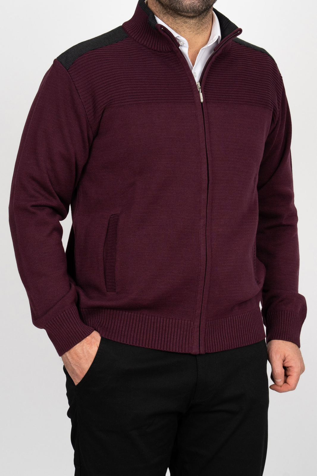 Această jachetă mov pruna, realizată din tricot de calitate superioară, îmbină stilul clasic cu un design modern. Textura ribbed adaugă un plus de rafinament.
