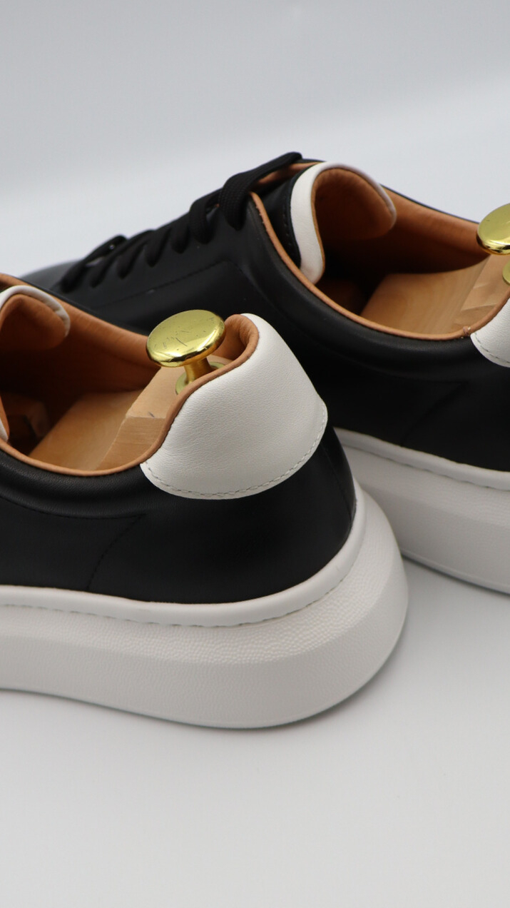 Descoperă echilibrul perfect dintre stil minimalist și confort absolut cu această pereche de pantofi ESCUDO. Realizați din piele naturală premium, acești sneakers eleganți impresionează prin designul lor curat, în nuanță clasică de negru, completat de talpa albă contrastantă - un statement subtil de rafinament contemporan.