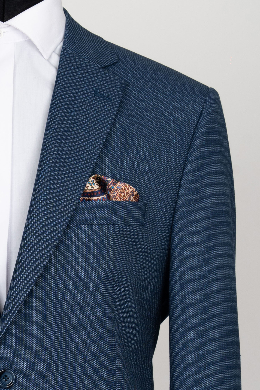 Acest sacou bărbătesc regular fit impresionează printr-o nuanță deosebită de bleumarin-pepit și o textură fină care adaugă profunzime materialului. Este o piesă construită pentru bărbatul care apreciază echilibrul dintre eleganța clasică și confortul modern. Linia croielii regular fit oferă libertate de mișcare și o siluetă naturală, păstrând în același timp o prezență elegantă și bine definită.